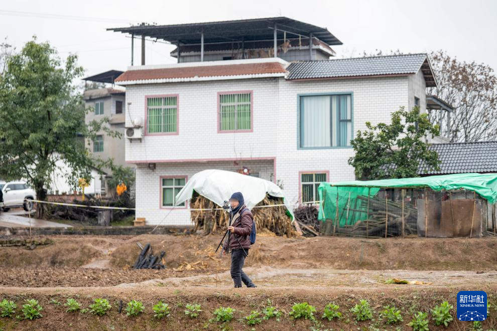 1月20日,在重庆市合川区云门街道庆福村,主播在合川女孩“呆呆”家门口的田地里进行直播。