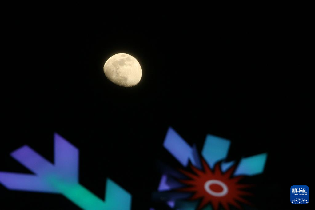 1月29日在黑龙江亚布力滑雪旅游度假区拍摄的月亮。