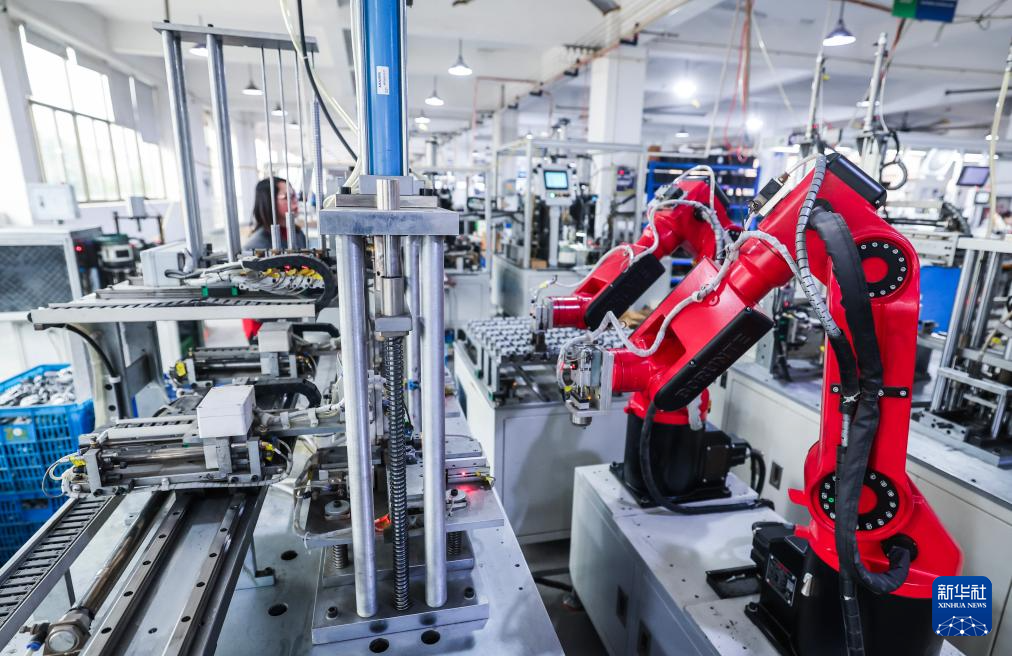 1月29日,在位于金华市金东区的金顺工具有限公司车间内,自动化流水线上在生产电机定子。该公司是一家从事喷枪、喷涂机等喷涂技术与产品研发、制造和销售的国家高新技术企业、国家专精特新“小巨人”企业,产品出口销往欧美97个国家和地区,授权专利197项。