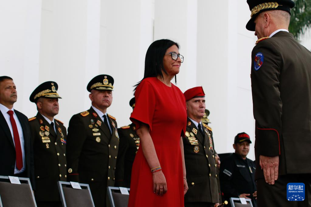 1月28日,委内瑞拉代总统德尔西·罗德里格斯(前左)在加拉加斯出席军方活动。