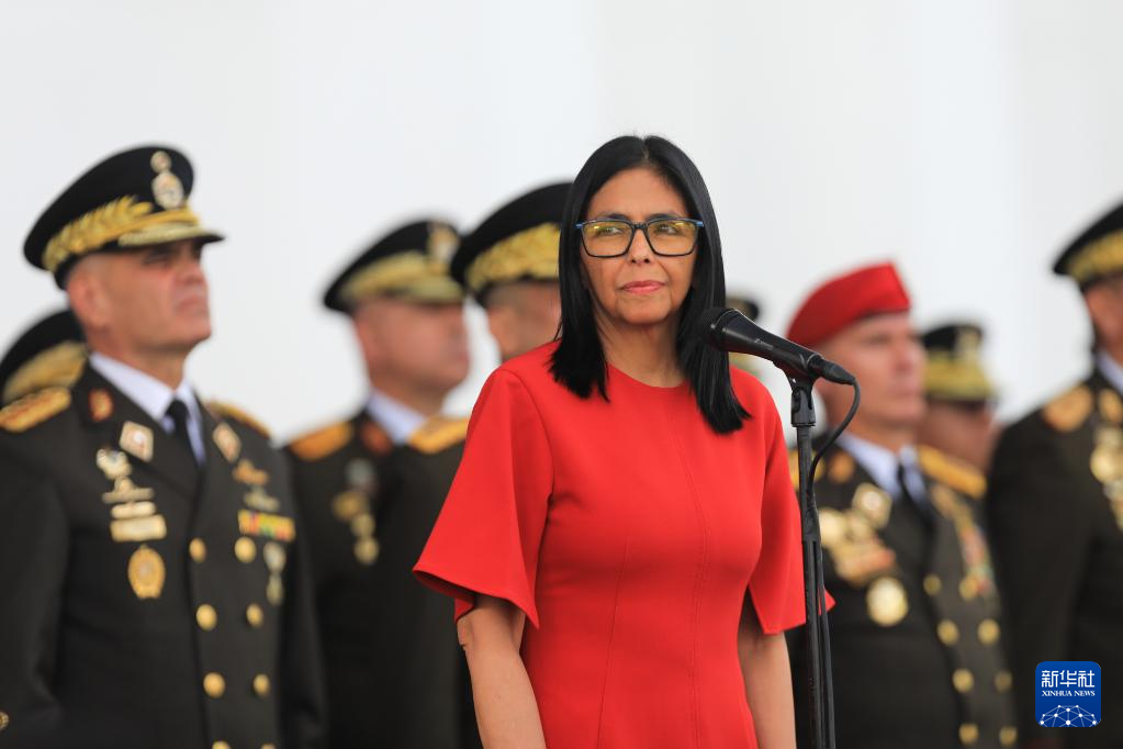 1月28日,委内瑞拉代总统德尔西·罗德里格斯(前中)在加拉加斯出席军方活动。