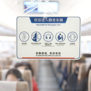 1月27日在G6686次列车“静音车厢”拍摄的“静音车厢”标识。