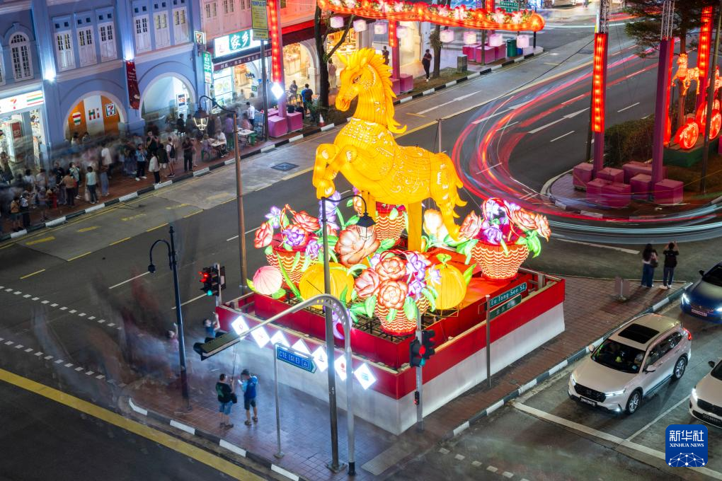 当日,新加坡牛车水春节灯饰正式亮起。