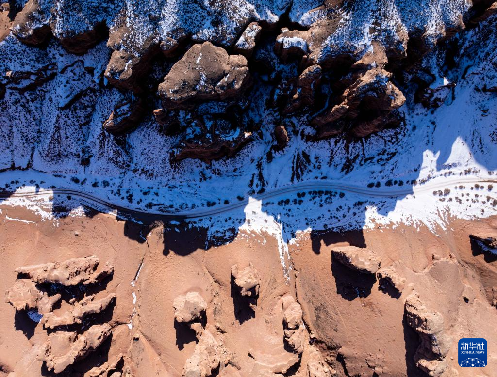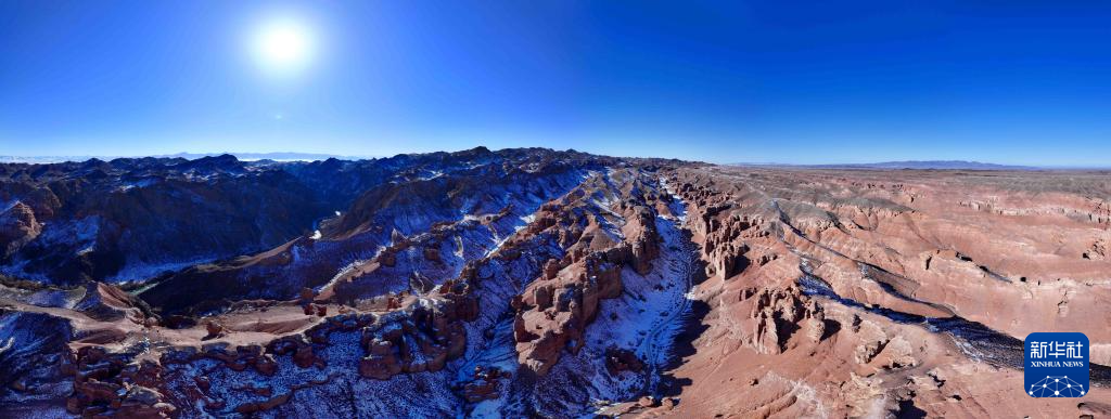 这是1月30日在哈萨克斯坦阿拉木图州拍摄的恰伦峡谷风光(无人机照片)。