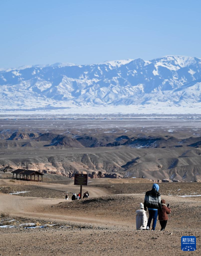 1月30日,在哈萨克斯坦阿拉木图州,游客在恰伦峡谷游玩。