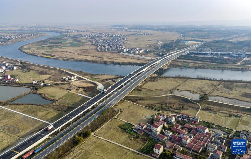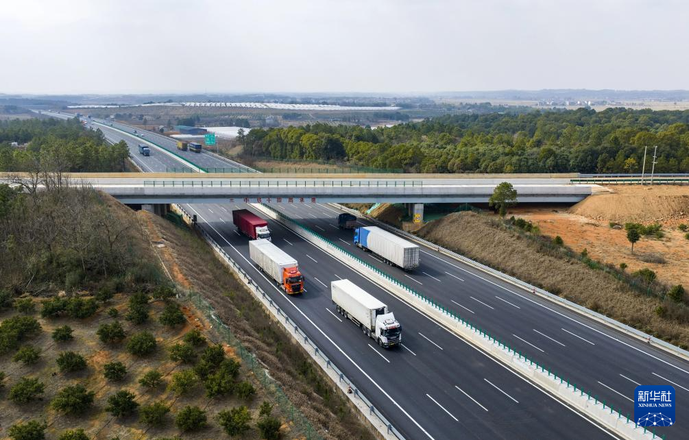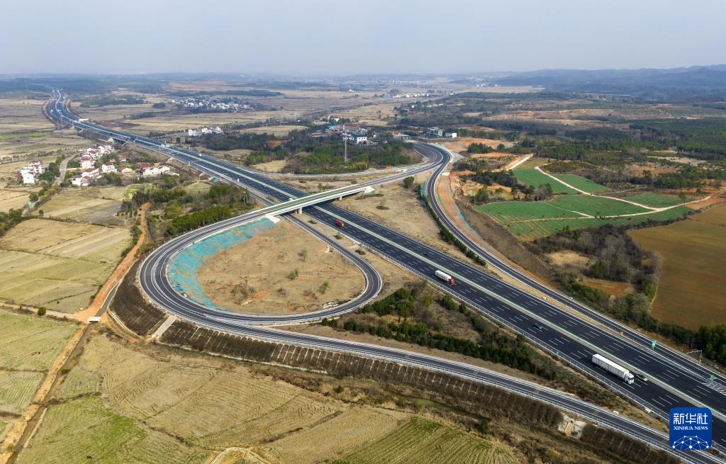 1月31日拍摄的江西樟树至吉安高速公路(无人机照片)。