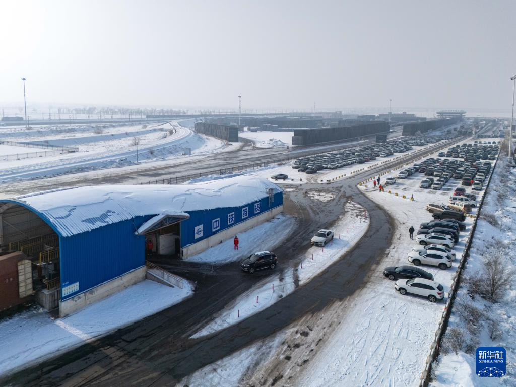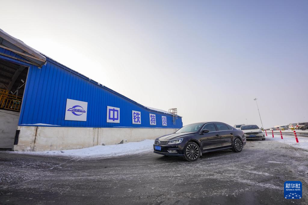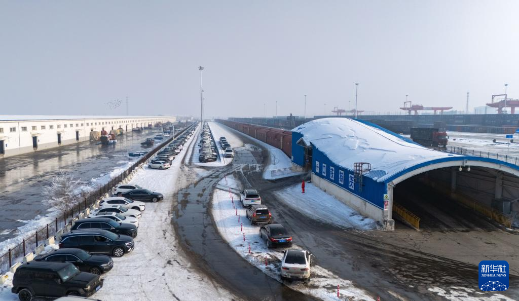 这是1月31日在新疆乌鲁木齐拍摄的中铁特货乌鲁木齐分公司三坪物流基地国铁汽车托运交车区。