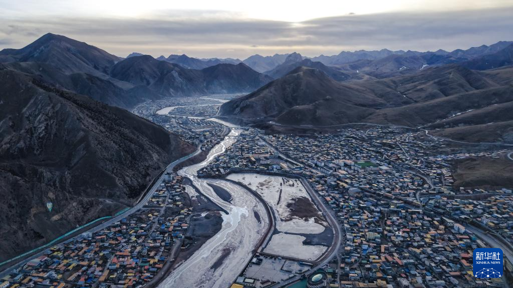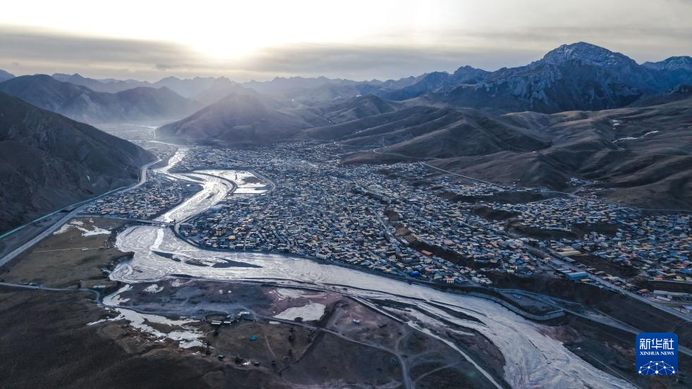 这是1月30日拍摄的青海省玉树藏族自治州杂多县冬景风光(无人机照片)。