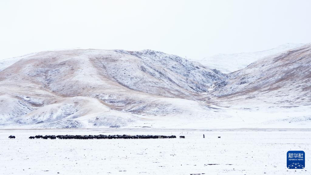 1月29日,牧民在青海省玉树藏族自治州杂多县境内的草原上放牧。