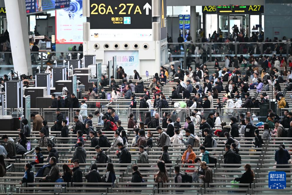 2月2日,旅客在沪昆高铁贵州铜仁南站转乘。