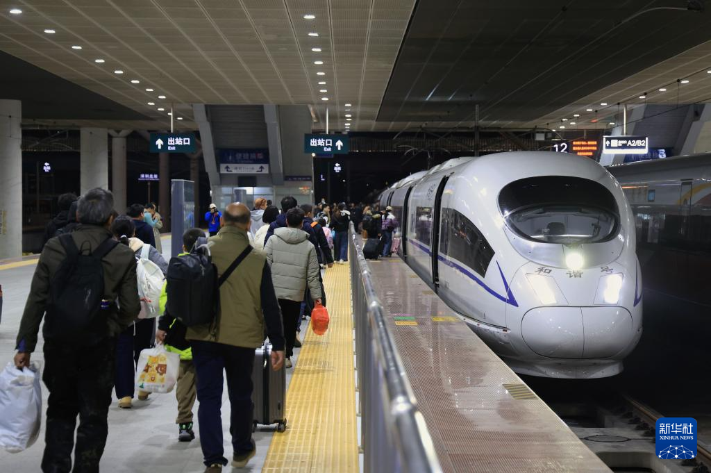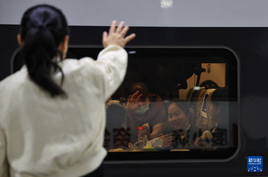 2月1日深夜,在广州白云站,乘坐K4232次列车的旅客们挥手告别。2月2日凌晨0时01分,开往四川达州的K4232次列车缓缓驶离广州白云站,这是2026年粤港澳大湾区开出的首趟春运列车。