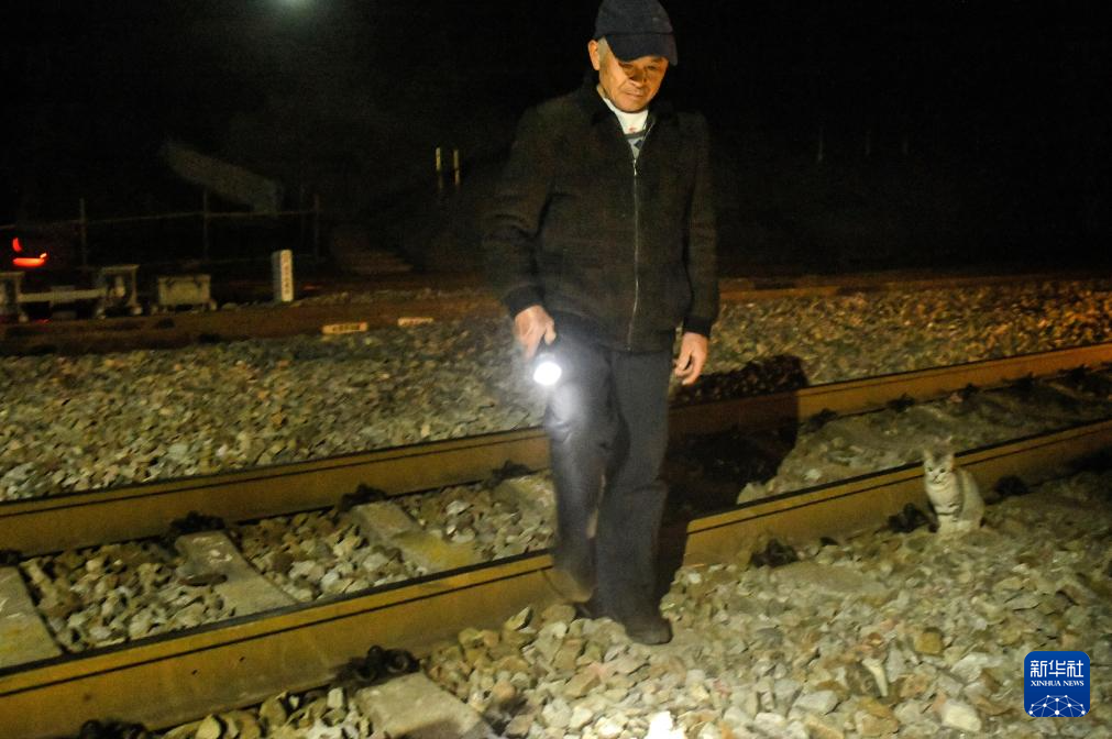 2026年2月3日,王庆财在八斗站的铁路沿线巡查。