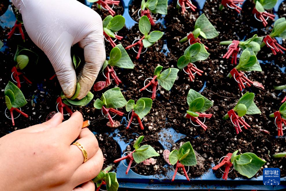 2月4日,在安徽省亳州市谯城区赵桥乡,农民在温室大棚内嫁接西瓜苗。