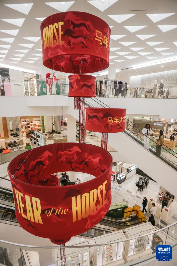 2月4日,顾客走过加拿大温哥华一家百货商店内展示的春节主题服饰。