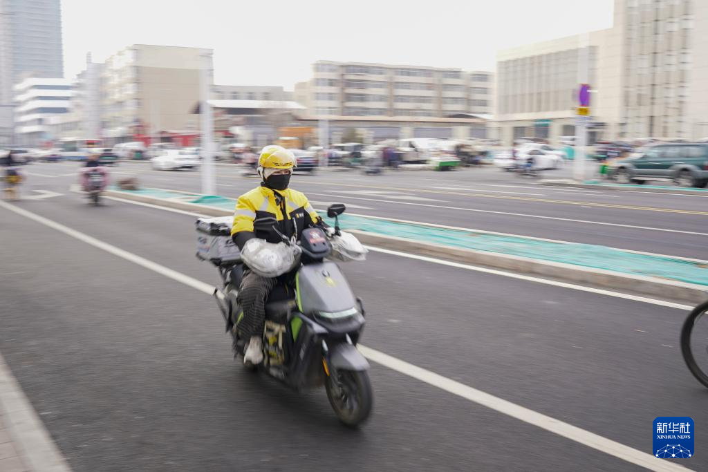 临近春节,订单增多,戚德敏和同事们冒着严寒,将一份份美食准时送达。成为外卖骑手近两年,戚德敏的配送总里程已达3万多公里。工作中,她有过不被理解的委屈,也经常被顾客、商家不经意间的温暖感动着。戚德敏说,作为一名骑手,她的职责就是守护好一份份被等待的温暖。