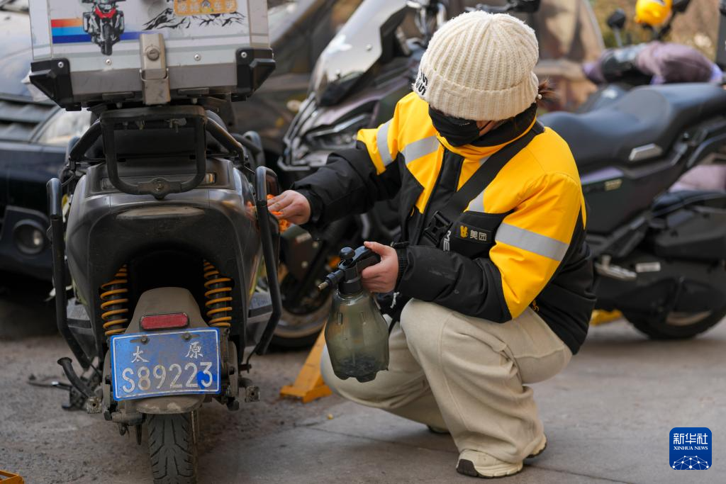 外出配送前,戚德敏清洁电动车(1月29日摄)。