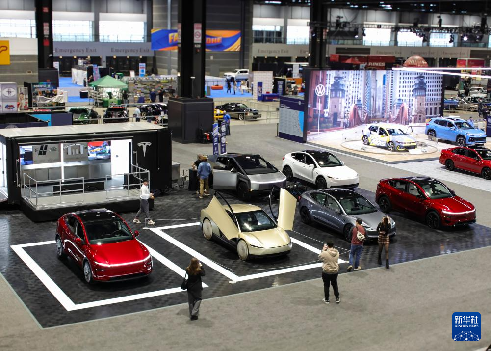 这是2月6日在美国芝加哥麦考密克展览中心拍摄的特斯拉展台。