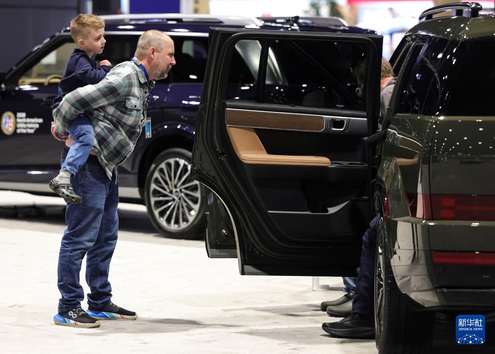 2月6日,在美国芝加哥麦考密克展览中心,人们观看展车。