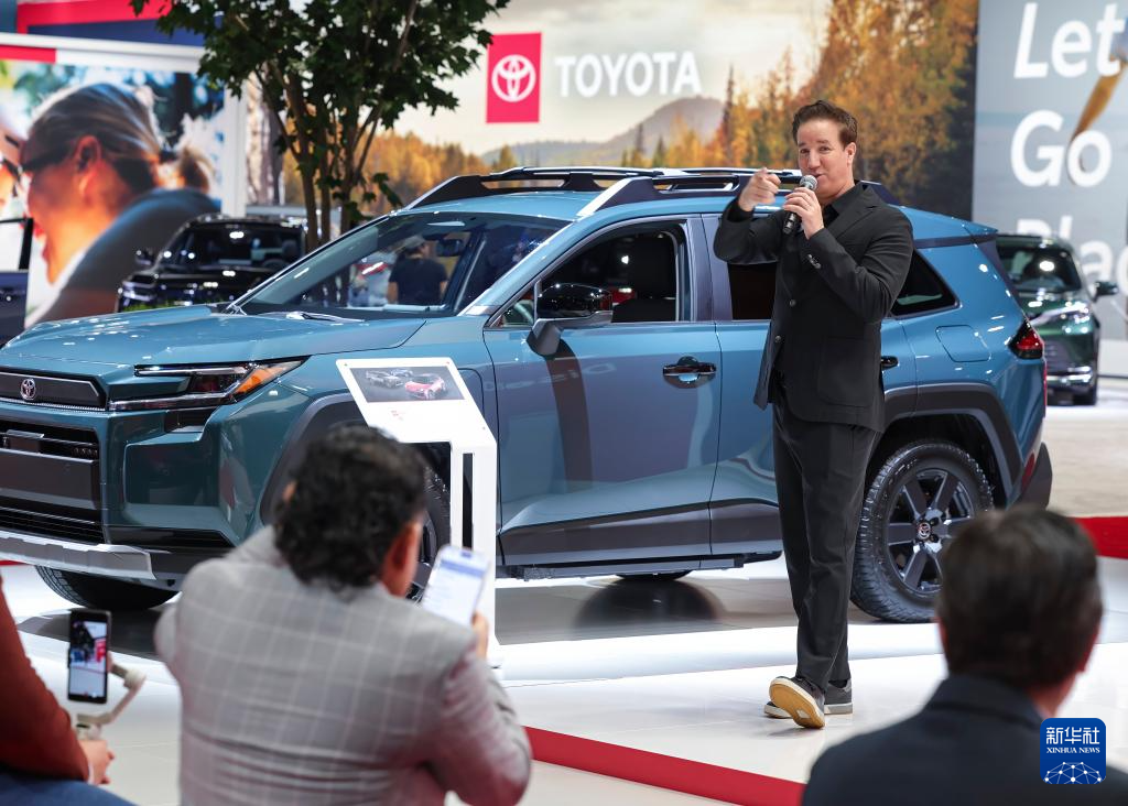 2月6日,在美国芝加哥麦考密克展览中心,一名发言人在丰田汽车展台介绍产品。