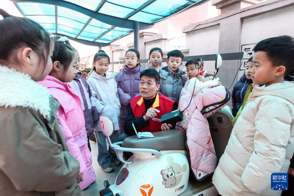 2月5日,在河南省焦作市博爱县新华小学,供电职工为学生们讲解安全用电知识。