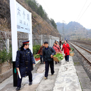2月8日,村民在六个鸡站进站候车,准备乘坐5640次“慢火车”外出卖菜。