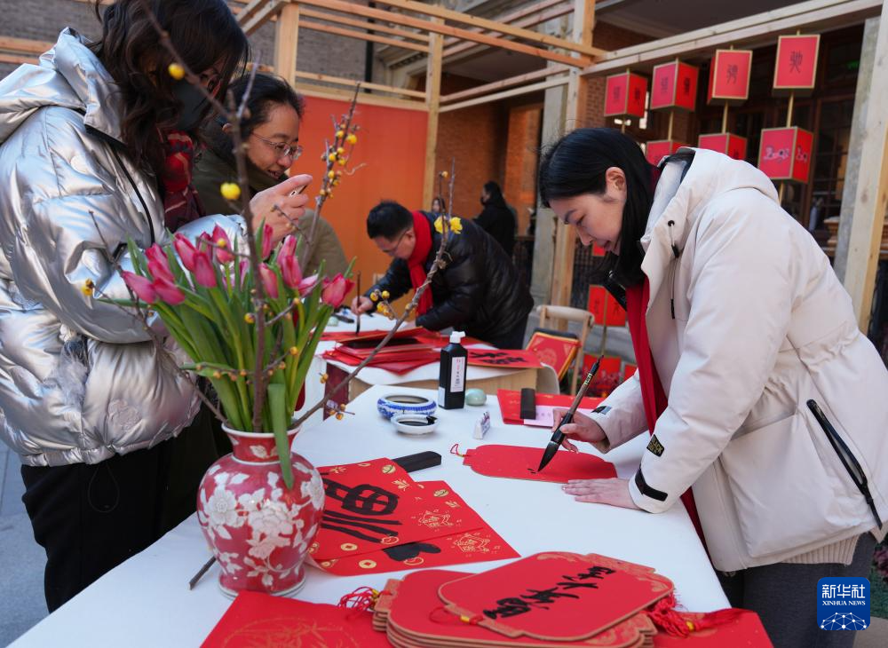 2月8日,书法家们在游园会上为市民写春联和福字。