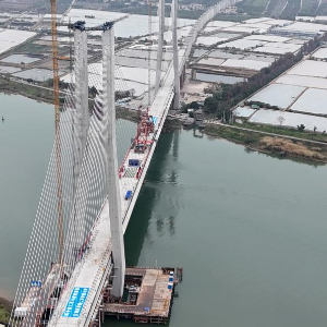 2月10日,中铁广州工程局集团承建的深江铁路广中江特大桥跨鸡鸦水道主桥顺利合龙,成为深江铁路全线首个实现合龙的主桥。跨鸡鸦水道主桥全长约789米,是深江铁路全线重点控制性工程。深江铁路是我国“八纵八横”高铁网沿海通道的重要组成部分,线路起自深圳西丽站,正线全长约116公里,跨越珠江口,串联深圳、东莞、广州、中山和江门等5座粤港澳大湾区城市。深江铁路建成后,深圳与江门可实现1小时内通达。