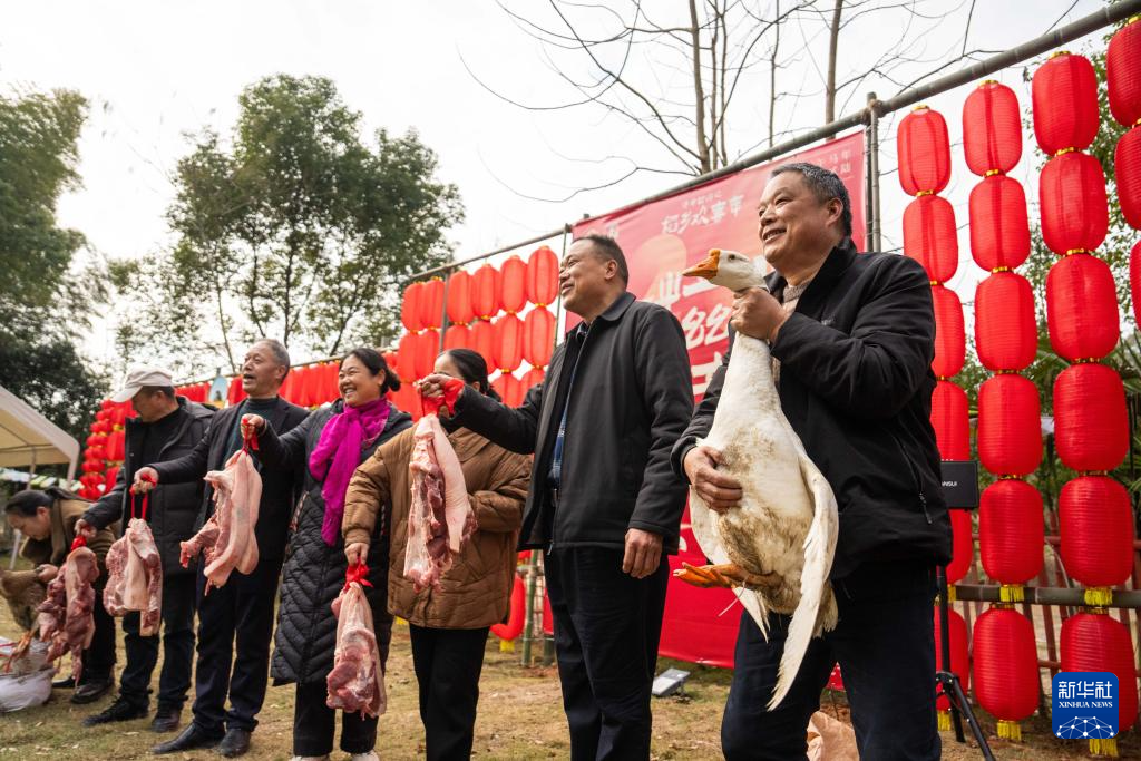 春节临近,“稻香欢喜年”迎新春活动在湖南省常德市鼎城区谢家铺镇港中坪村举行,村民们通过参加打糍粑大赛、写春联、拓年画等传统年俗活动迎接新春佳节。