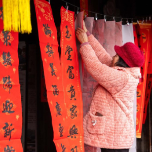 2月10日,村民在谢家铺镇港中坪村写春联。