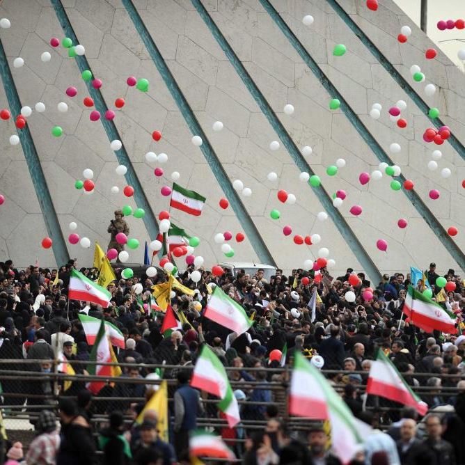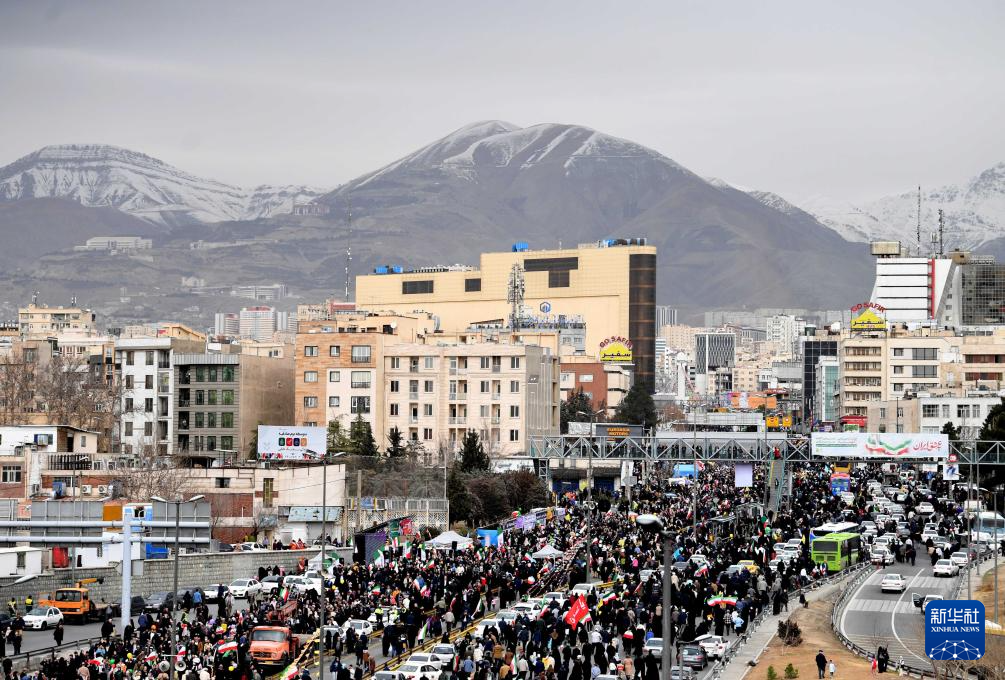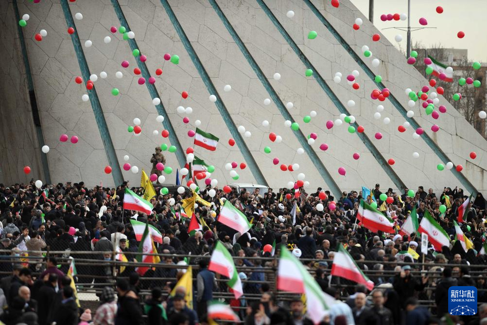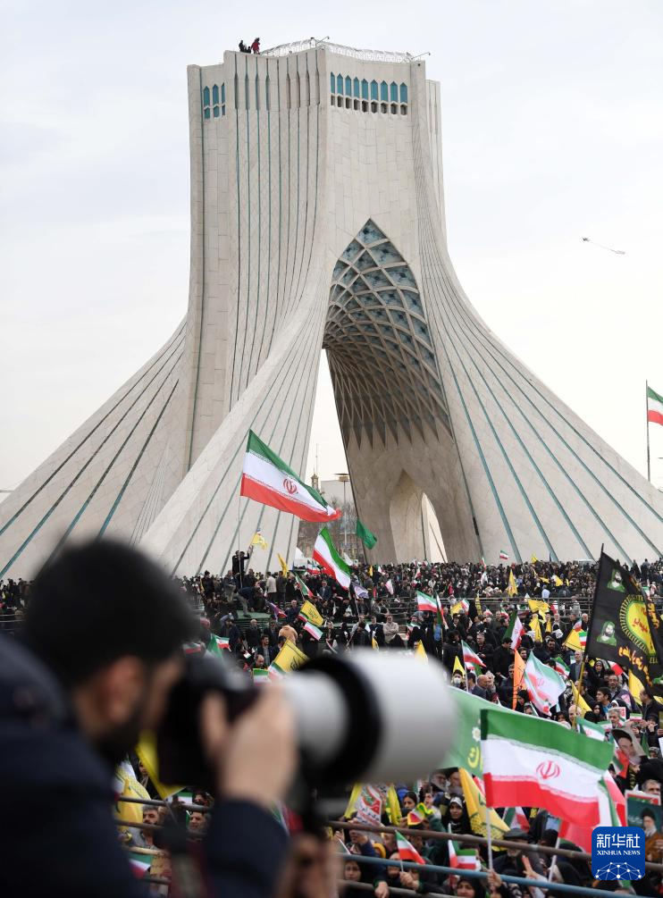 2月11日,在伊朗首都德黑兰,民众在阿扎迪广场参加纪念伊朗伊斯兰革命胜利47周年集会。