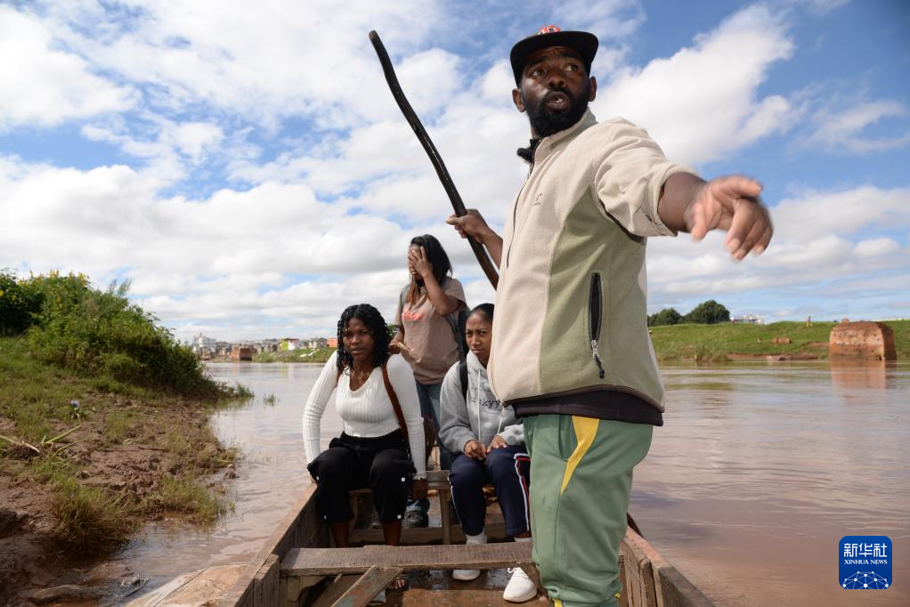 2月12日,在马达加斯加首都塔那那利佛,人们划船出行。
