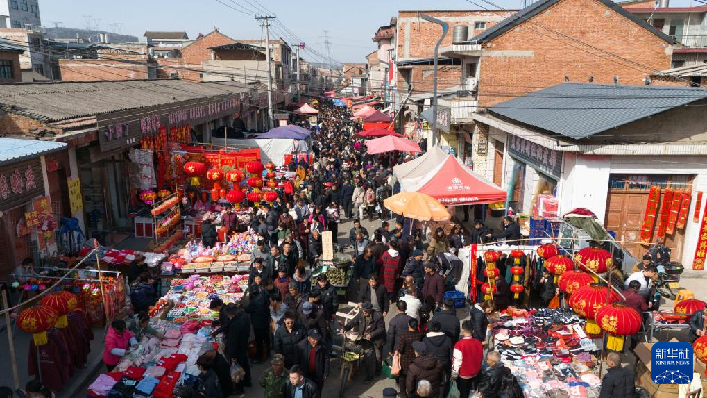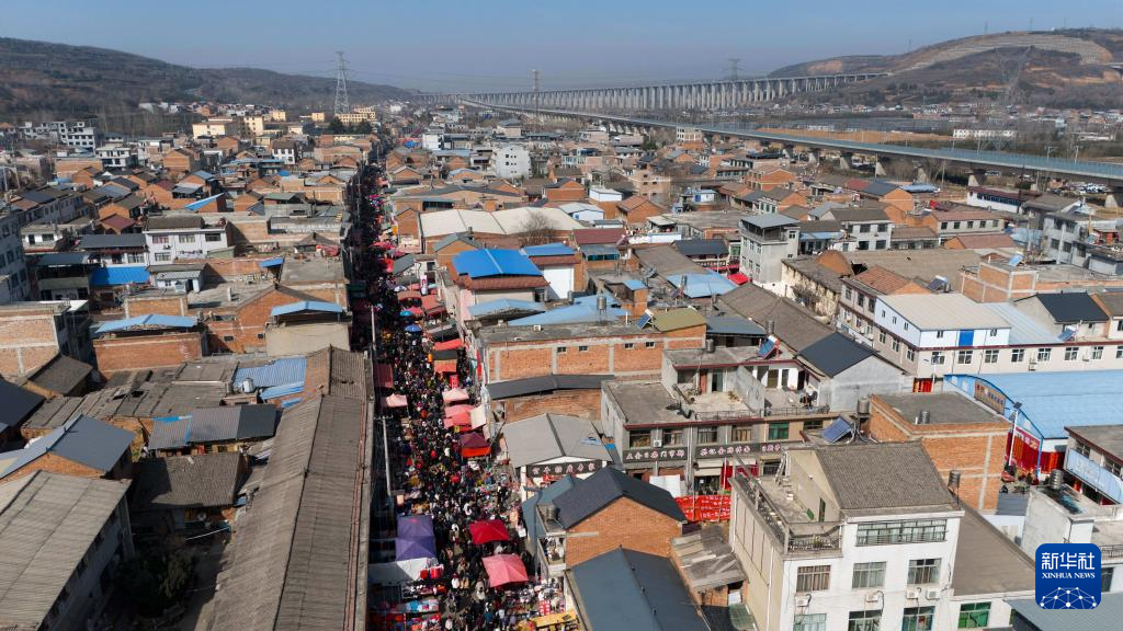 2月13日拍摄的焦岱大集(无人机照片)。