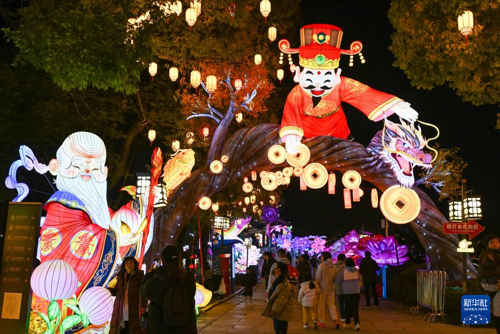 2月12日,市民在四川达州高新区梨树坪“2026达州首届新春彩灯游园会”现场观赏花灯。