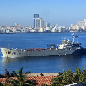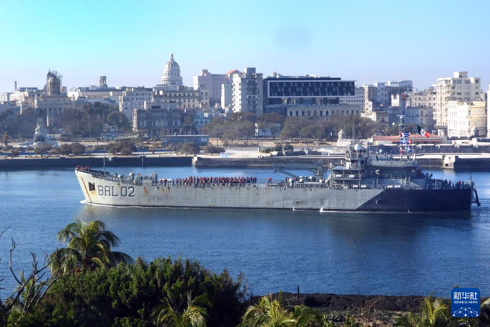 2月12日,在古巴首都哈瓦那,一艘来自墨西哥的人道主义援助船驶入哈瓦那港。