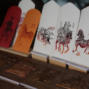这是2月12日在越南首都河内的新春书法节现场拍摄的拓印红包。