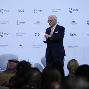 2月15日,在德国慕尼黑,慕安会主席沃尔夫冈·伊申格尔在闭幕式上致辞。
