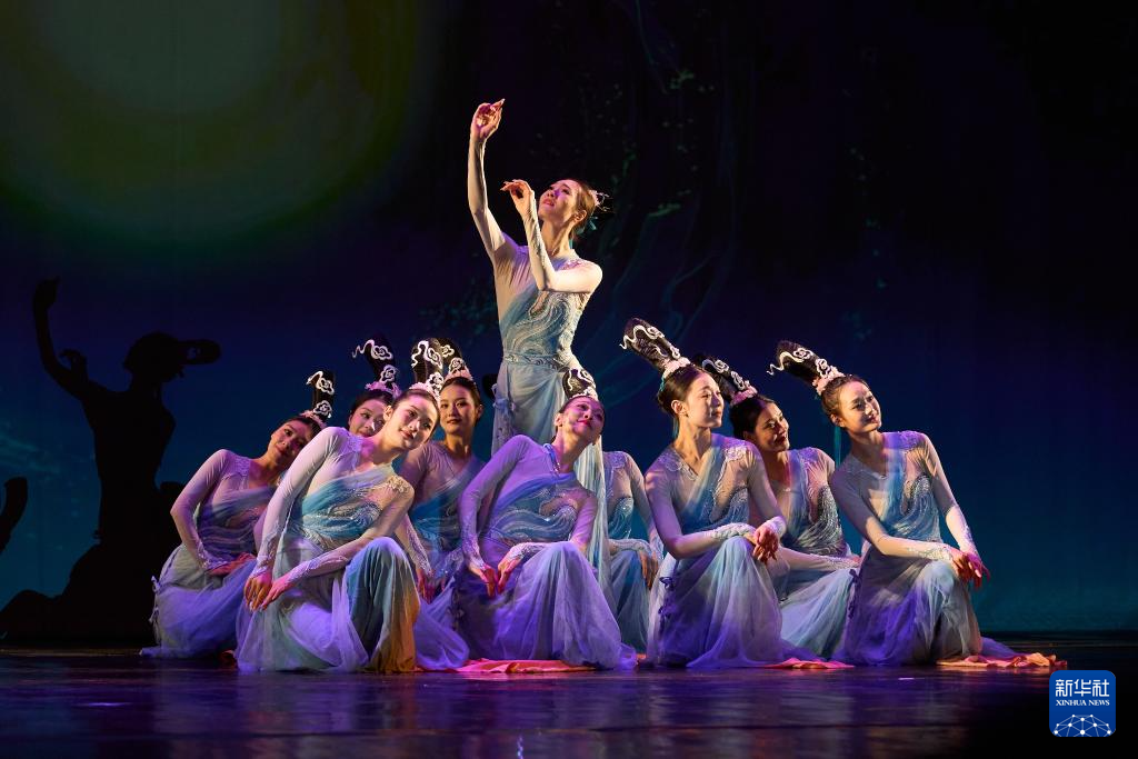2月14日,舞者在泰国曼谷表演舞蹈《跳春》。来自中国的舞蹈、声乐、武术、杂技在此轮番登场。