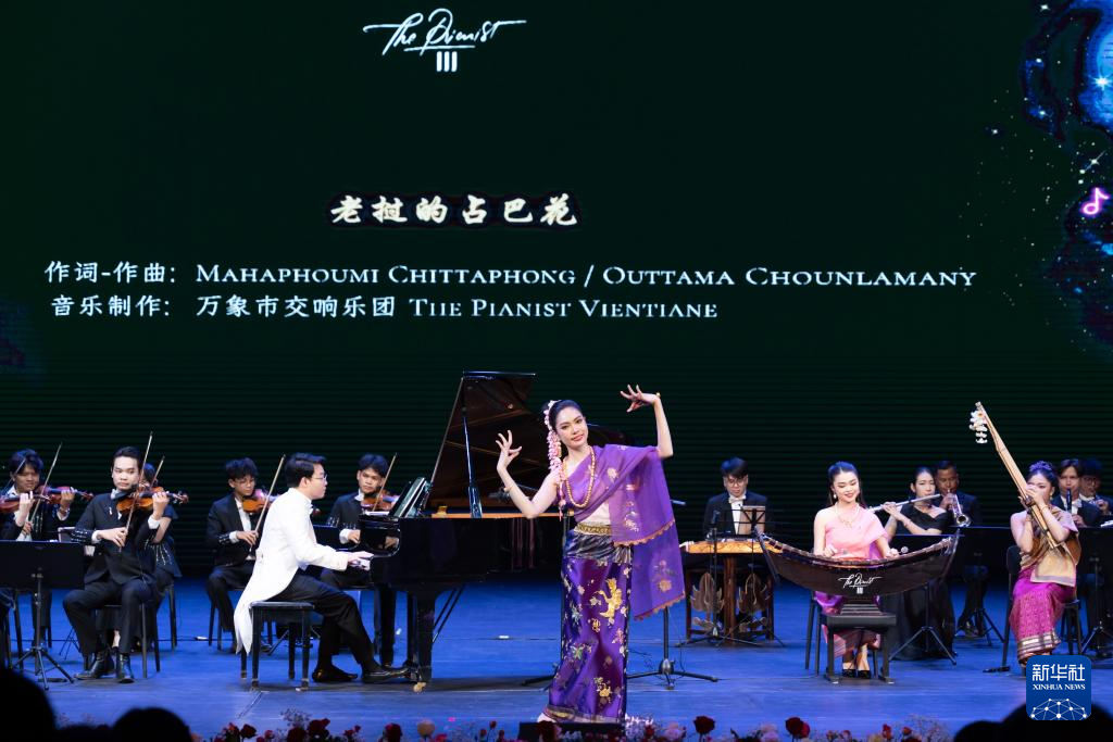 2月13日,在老挝万象,中老两国艺术家在迎马年春节活动上表演。