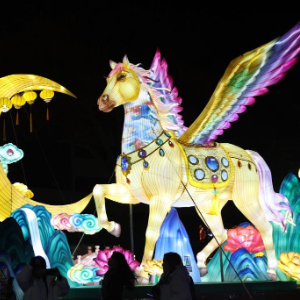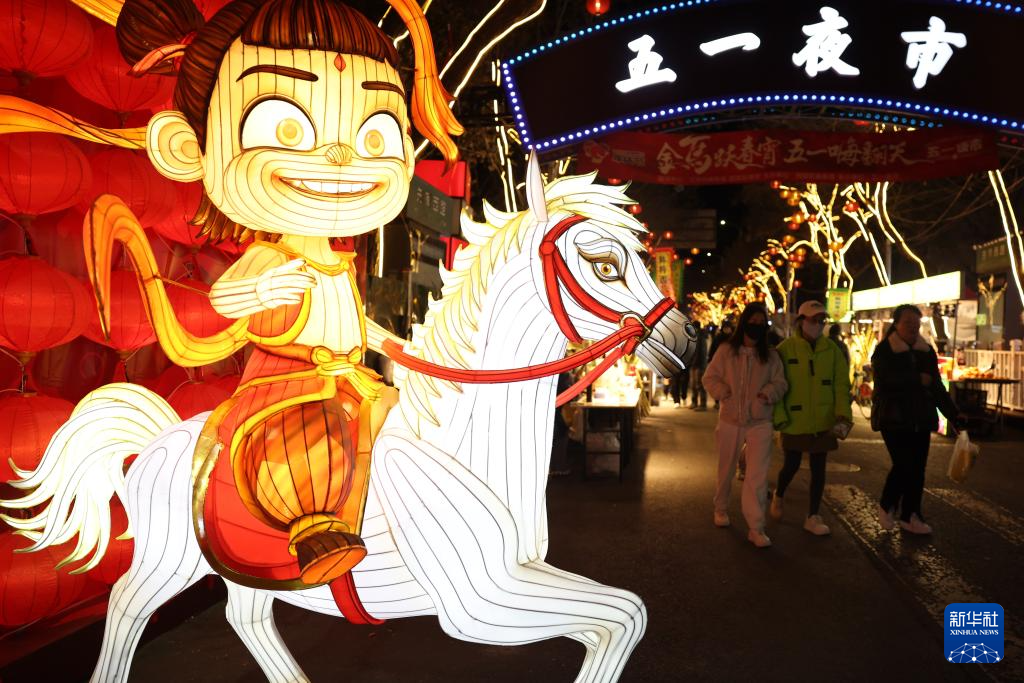农历马年春节将至,以“金城跃马·盛世迎春”为主题的甘肃省兰州市西固区迎春灯会吸引了众多游客。夜色下,花灯璀璨、流光溢彩,融合传统工艺与现代光影技术的各类灯组烘托出浓浓的年俗氛围。