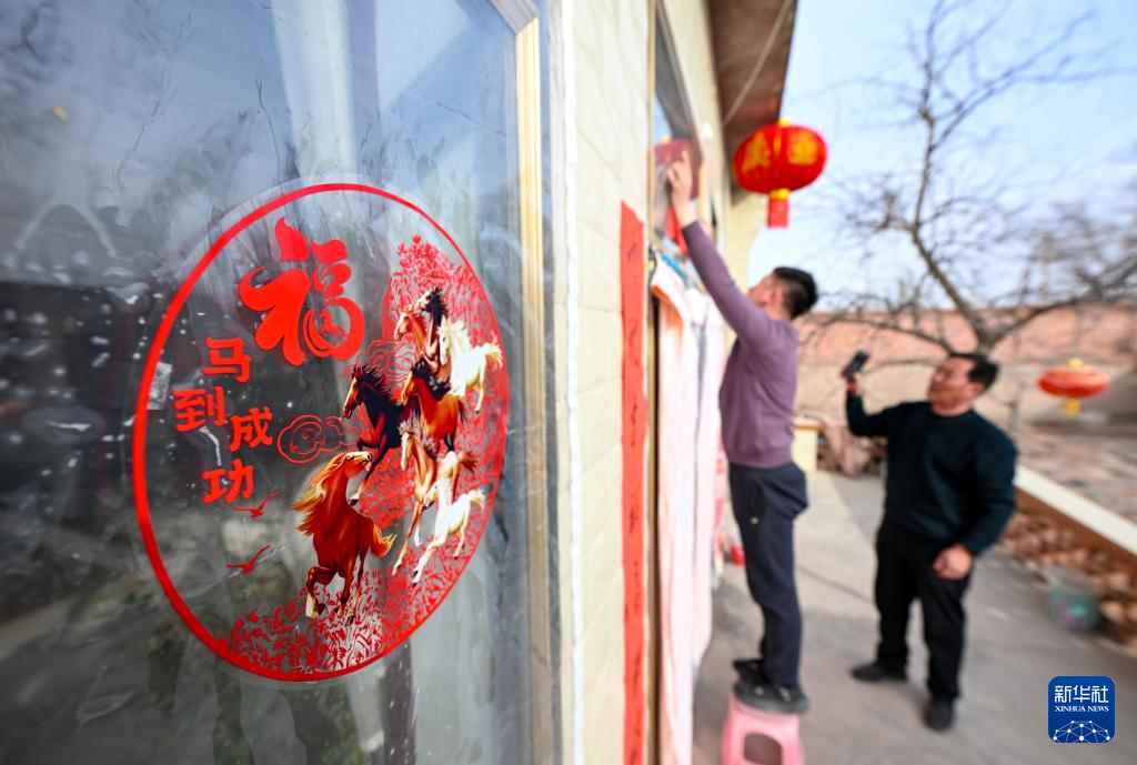 2月16日是农历除夕,在宁夏银川市永宁县闽宁镇福宁村,吴维东在家中小院挂好对联,一家欢度春节。