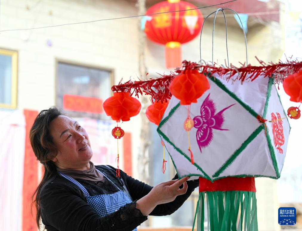 2月16日,吴维东的妻子韩树琴在整理自己做的纸灯笼。