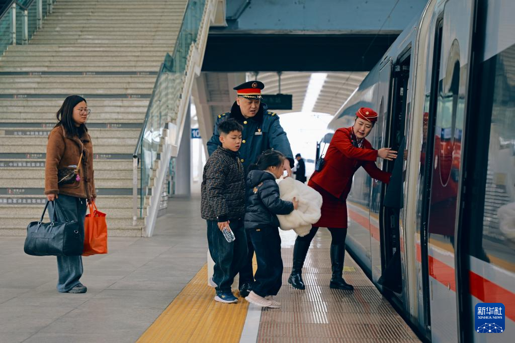 2月16日,铁路徐州东站工作人员协助旅客上车。