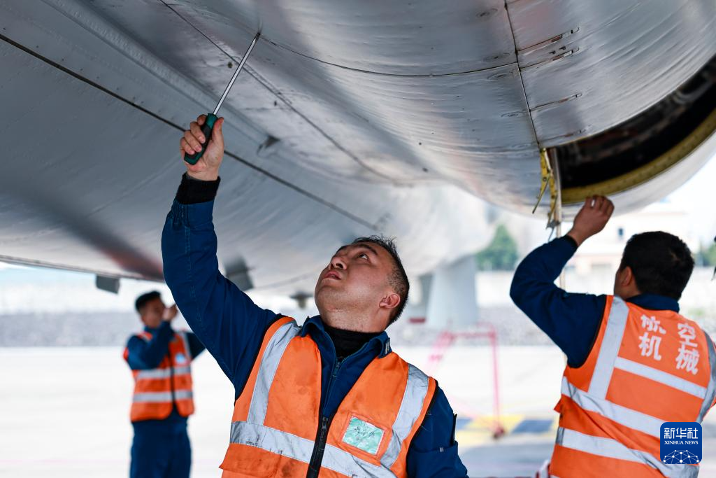 2月15日,南部战区空军航空兵某部,机务官兵对春节期间值班战机进行检查维护。