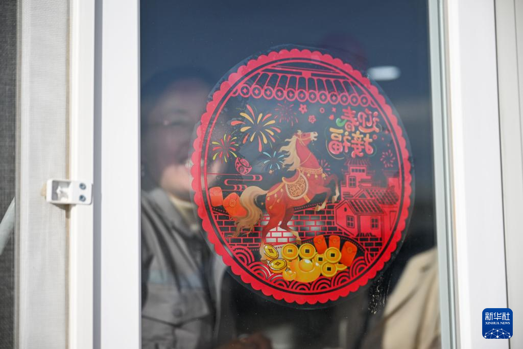 2月16日,在土耳其阿克萨拉伊省图兹湖地下天然气储库扩建项目二期工程营地,中工国际的职工在贴窗花。