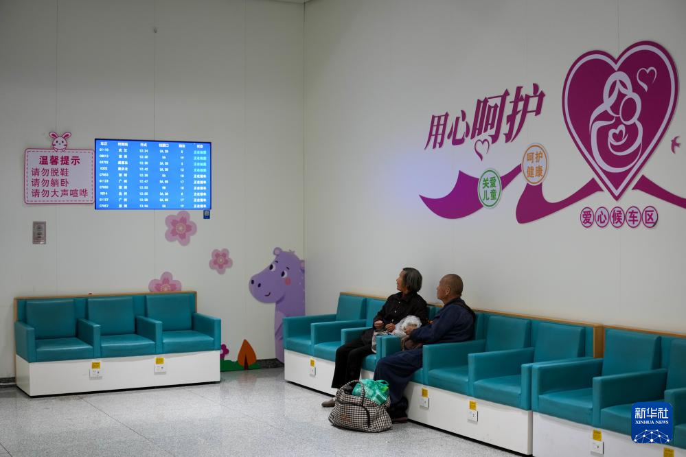 2月19日,旅客在广州白云站爱心候车区内候车。