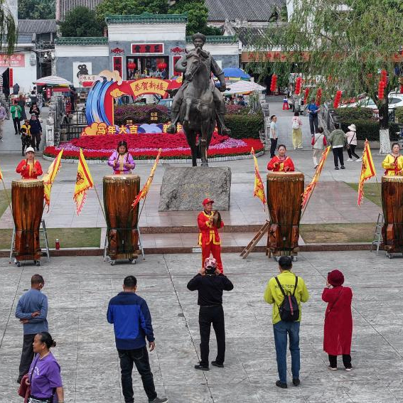春节期间,在广西钦州市刘永福广场,轮番展演的新春采茶戏和烟墩大鼓“击鼓迎春”等活动,让传统文化的韵味飘香,丰富了群众的春节文化生活。