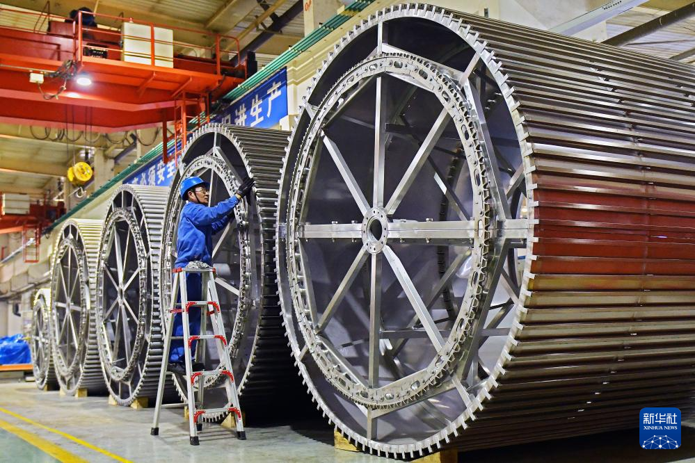 2月24日,在河南省洛阳市中信重工生产车间,工人在加工生产订单产品。