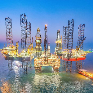 这是2月24日拍摄的渤海油田海上油气平台作业现场(无人机照片)。