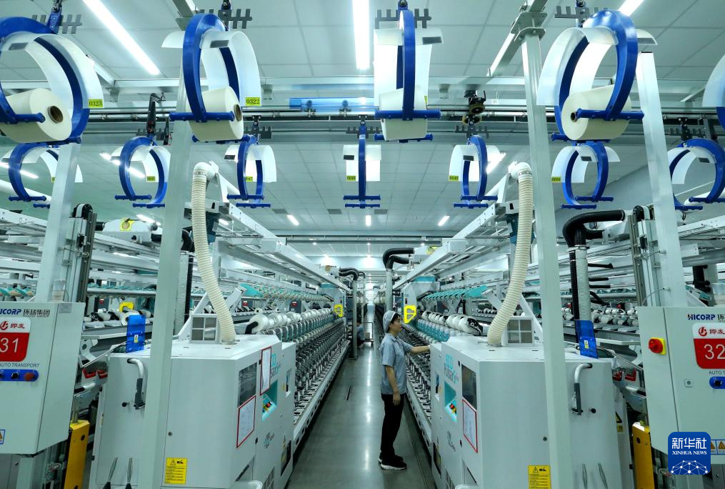 2月24日,山东省青岛市即墨区即发纺织科技有限公司的工人在生产高端纤维产品。