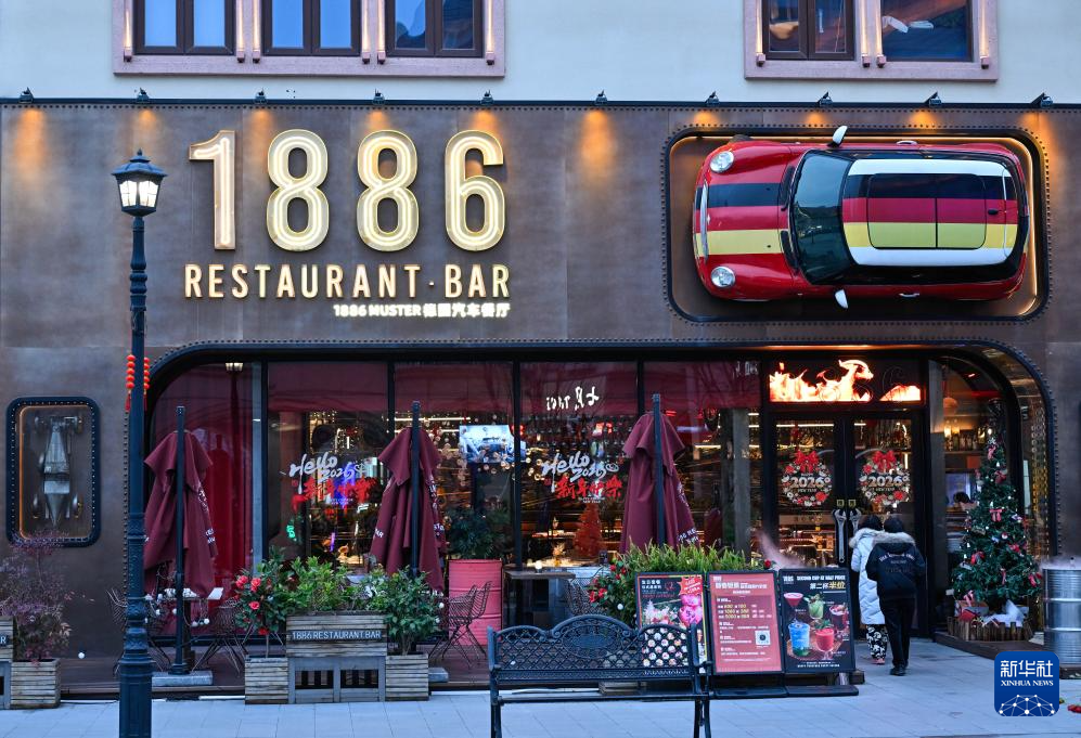 2026年2月24日,在太仓罗腾堡风情街,顾客走进一家德国餐厅。